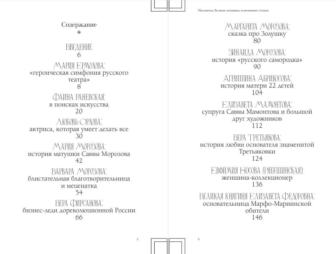В этой книге собраны истории о двадцати невероятных женщинах-москвичках — смелых, амбициозных, талантливых, чутких. Каждая москвичка была особенной: они блистали на сцене театра, снимались в кино, руководили мануфактурами, вдохновляли художников, строили и открывали школы, лечебницы, родильные дома.