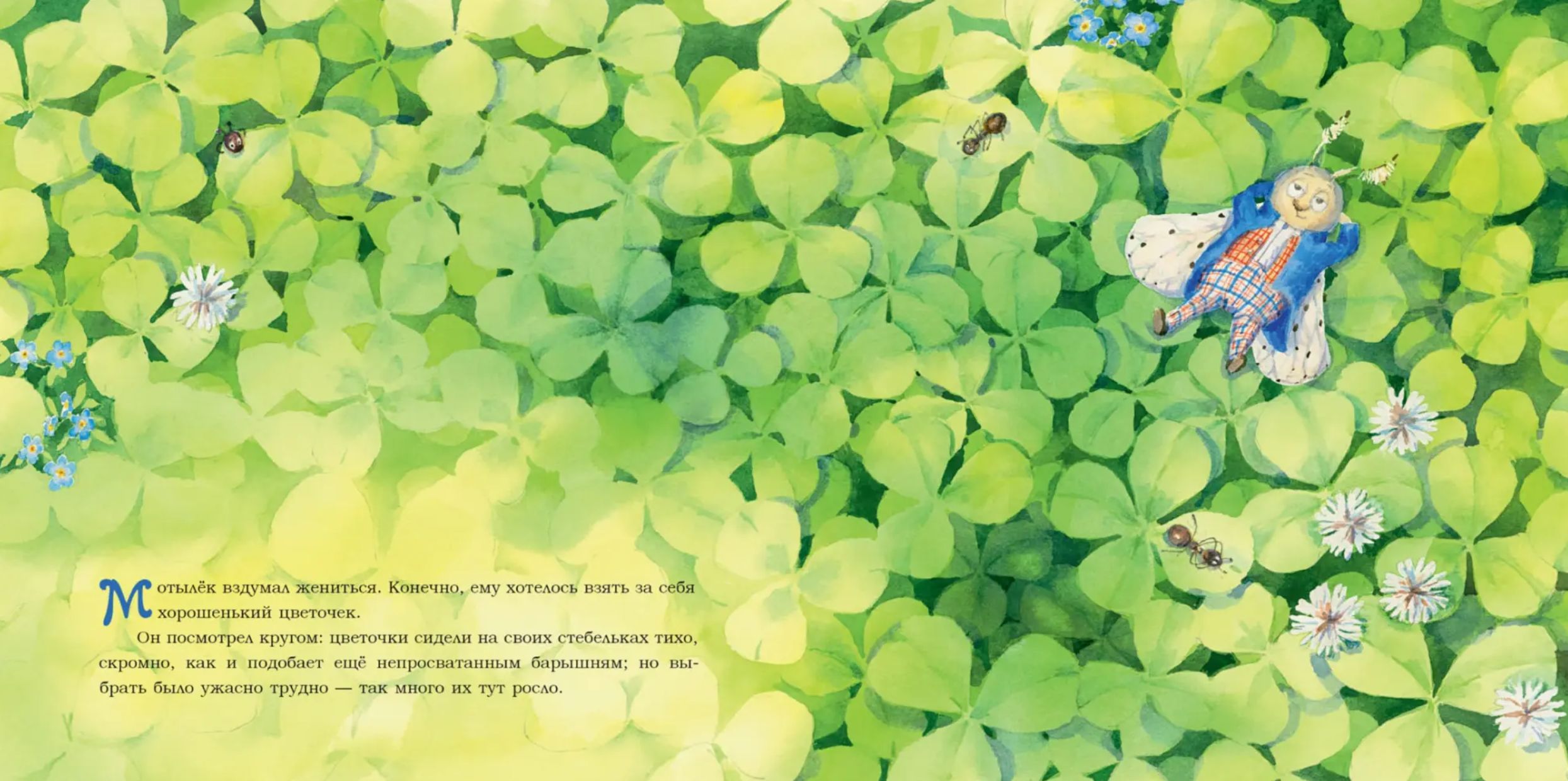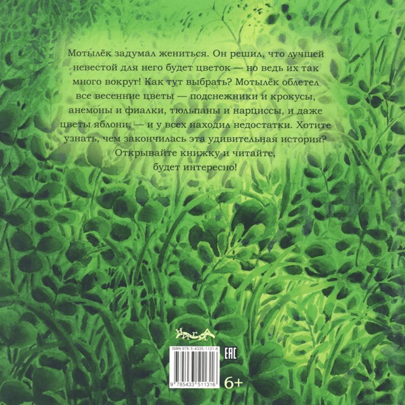 Мотылёк задумал жениться. Он решил, что лучшей невестой для него будет цветок - но ведь их так много вокруг! Как тут выбрать? Мотылёк облетел все весенние цветы - подснежники и крокусы, анемоны и фиалки, тюльпаны и нарциссы, и даже цветы яблони, - и у всех находил недостатки. Эта невеста простовата, та недолговечна, у той слишком много родни… Хотите узнать, чем закончилась эта удивительная история? Открывайте книжку и читайте, будет интересно!
