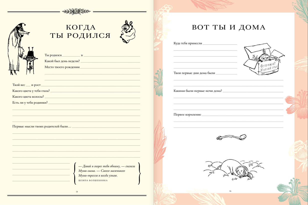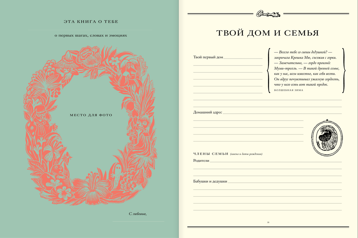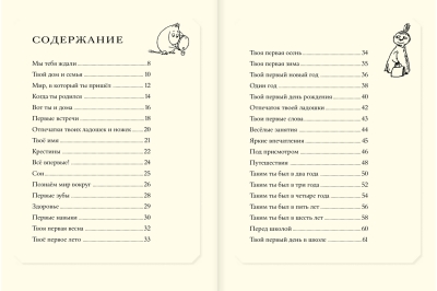 Первые этапы жизни малыша — это целый мир, полный чудес. Важные события и поворотные моменты теперь не потеряются, ведь они будут записаны в книгу, где на каждом развороте живут Муми-тролль, Крошка Мю, Снифф и другие любимые персонажи вселенной Туве Янссон.