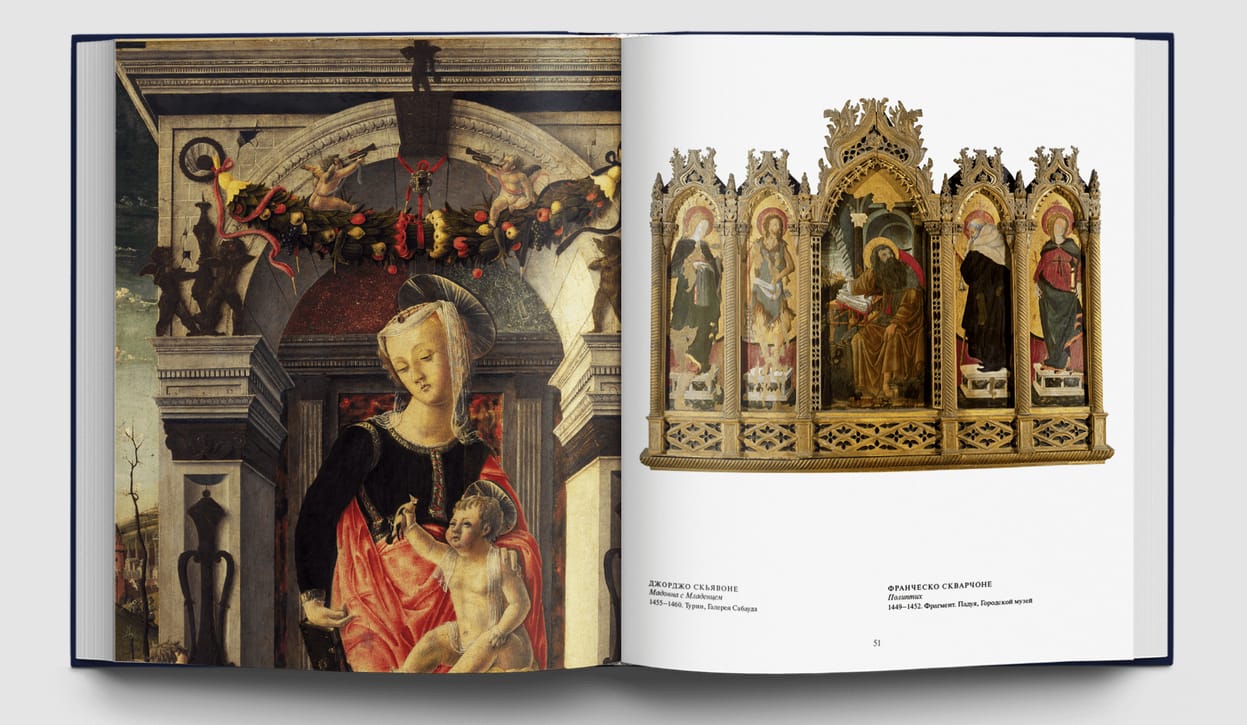 Альбом «Музеи Италии. Шедевры Ренессанса» отличается от других книг серии «Великие музеи мира» и концепцией, и структурой. Основная задача предыдущих альбомов — наиболее полно представить коллекции того или иного музея, продемонстрировать самые значительные произведения в хронологическом порядке. Новое издание сосредотачивается на произведениях одного периода – эпохи Ренессанса, а именно на полотнах Возрождения, представленных в самых разных музеях Италии.