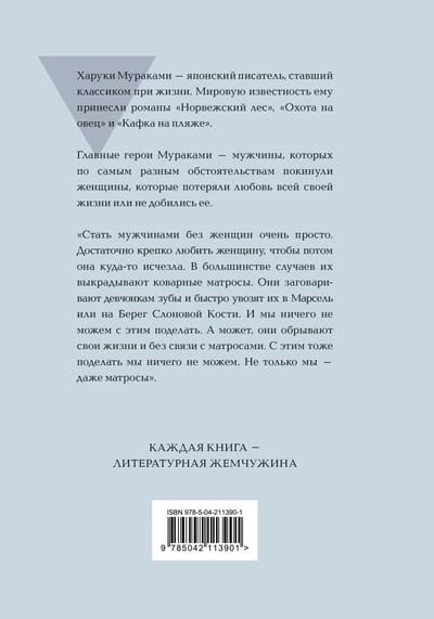 Главные герои Мураками — мужчины, которых по самым разным обстоятельствам покинули женщины. Кого-то из них разлучила измена возлюбленной, кого-то — смерть, кто-то остался один волею случая, а для кого-то это осознанный выбор.