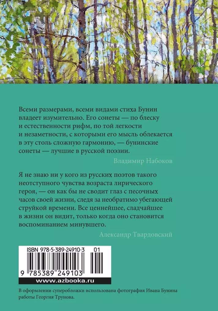 Имя Ивана Бунина, первого русского лауреата Нобелевской премии, поэта и прозаика, никогда не становилось знамением литературной школы или течения. Но, оставаясь в стороне от модных литературных веяний эпохи и сохраняя верность традициям золотого века, Бунин еще при жизни стал классиком. По словам А. Твардовского, его поэзии присуще «постоянное стремление найти в мире «‎сочетанье прекрасного и вечного»‎... раствориться в круговороте природы, в смене бесконечной чреды веков». Вглядываясь в картины природы, обращаясь к глубинам памяти и истории, к загадкам человеческой души, поэт обогатил русскую поэзию новыми интонациями и образами, запечатлев в своем творчестве странную «текучесть времени» и ускользающую красоту мира, которая, как мгновенный отблеск зарницы, порой освещает нашу жизнь таинственным светом. Основу настоящего сборника составили стихотворения, написанные в разные годы жизни и включенные автором в собрание сочинений 1934–1935 годов.