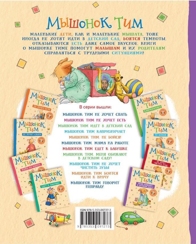 Серия книг про смешного и обаятельного мышонка Тима поможет малышам понимать, признавать и называть свои чувства, общаться со сверстниками и справляться с трудными ситуациями. В этом году мышонок Тим идет в новую группу. Ребята там постарше, они кажутся такими взрослыми и умными. Тиму очень хочется с ними подружиться, но те не принимают его в свою компанию да еще начинают обижать.