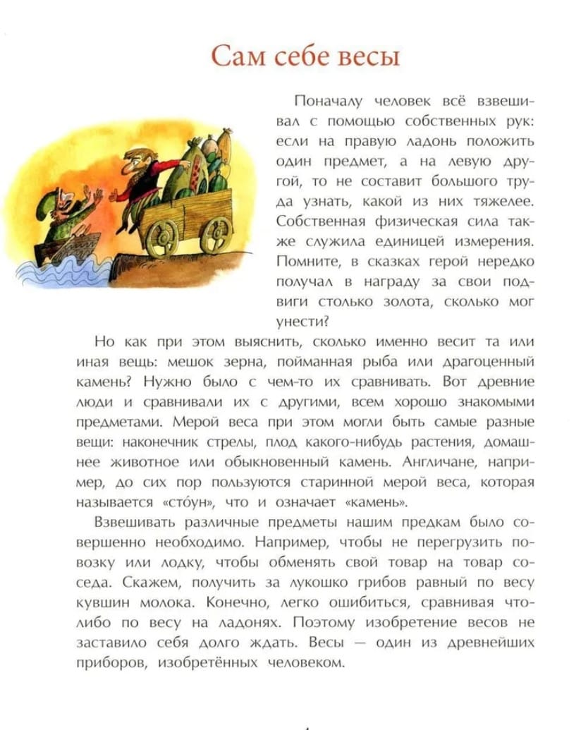 Эта познавательная книжка рассказывает о весах: об их важной роли в жизни человека, о том, как они появились и служили людям на протяжении тысячелетий. Юный читатель с интересом узнает, что поначалу человек все взвешивал с помощью собственных рук, потом были изобретены древнейшие рычажные весы, весы-безмен, затем пружинные весы. Сегодня повсюду применяются весы электронные, а чем удивят нас весы в будущем?