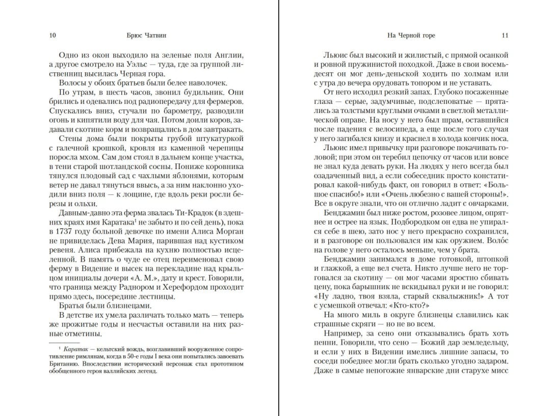 «На Черной горе» — это эпичная история двух близнецов, проживающих на ферме неподалеку от границы между Англией и Уэльсом. За свои восемьдесят лет они почти не покидали тесный мирок, ограниченный ближайшими городками и фермами, однако в их жизни было все, что отпущено каждому человеку на этой земле: любовь и жестокость, неразделенная страсть и предательство, нежная дружба и мечты о дальних странах...