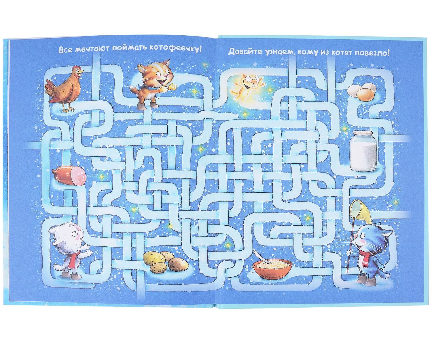 Когда наступают морозы… самое время ловить котофеечек. Что и затевает наша дружная троица однажды вечером. Котофеечки такие загадочные и такие неуловимые. А как красиво светятся в темноте. Для Феди, Васи и Тоси, если уж они что-то задумали, невозможного нет: и ловушку мастерили, и колбасой жертвовали… Но котофеечки так легко не сдаются. Вот котята и оказались в дремучем лесу на ночь глядя…