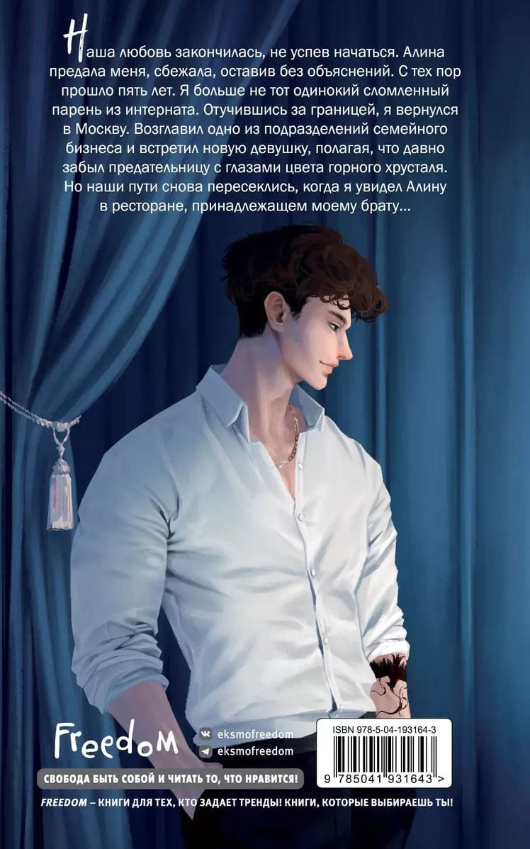 Наша любовь закончилась, не успев начаться. Алина предала меня, сбежала, оставив без объяснений. С тех пор прошло пять лет. Я больше не тот одинокий сломленный парень из интерната. Отучившись за границей, я вернулся в Москву. Возглавил одно из подразделений семейного бизнеса и встретил новую девушку, полагая, что давно забыл предательницу с глазами цвета горного хрусталя. Но наши пути снова пересеклись, когда я увидел Алину в ресторане, принадлежащем моему брату…
