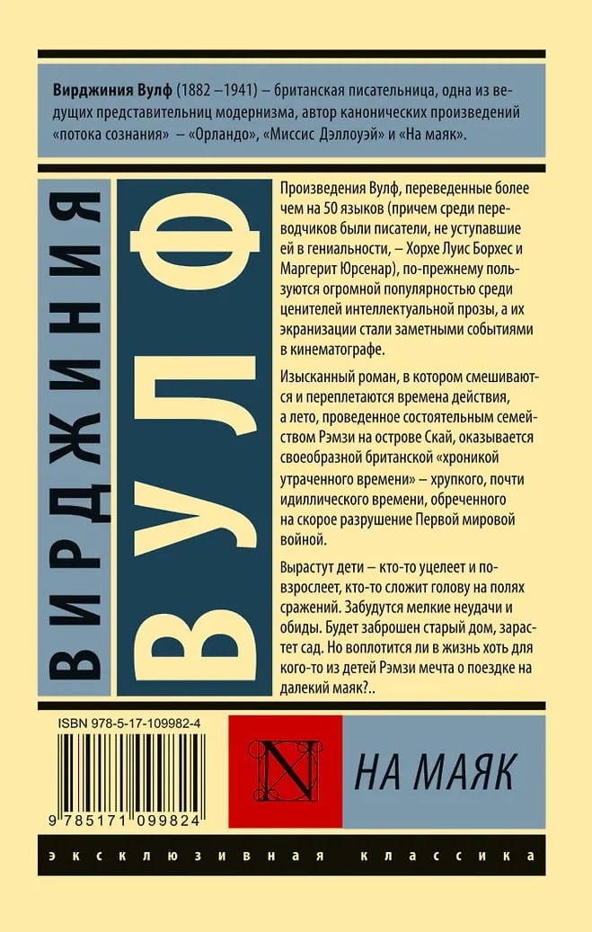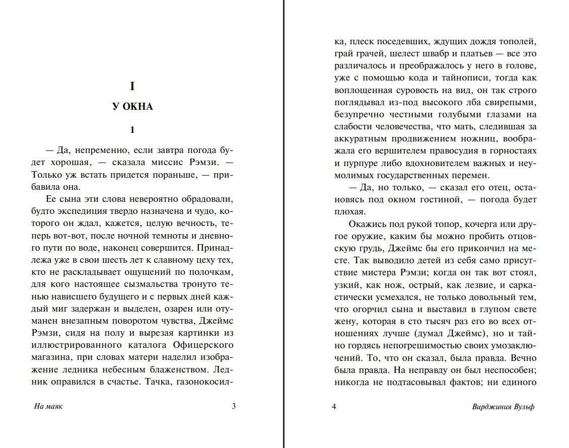 Изысканный роман, в котором смешиваются и переплетаются времена действия, а лето, проведенное состоятельным семейством Рэмзи на острове Скай оказывается своеобразной британской «хроникой утраченного времени», — хрупкого, почти идиллического времени, обреченному на скорое разрушение Первой мировой войной. Вырастут дети, — кто-то уцелеет и повзрослеет, кто-то сложит голову на полях сражений. Забудутся мелкие неудачи и обиды. Будет заброшен старый дом, зарастет сад. Но воплотится ли в жизнь хоть для кого-то из детей Рэмзи мечта о поездке на далекий маяк?..
