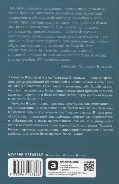 Ариадна Тыркова-Вильямс — одна из немногих женщин-политиков, принимавших активное участие в демократических преобразованиях в России на рубеже XIX–XX веков. Она выступала за создание в стране конституционного строя и сыграла заметную роль в организации и деятельности первой Государственной думы в России, была одной из основательниц и активных участниц Конституционно-демократической партии (кадетов).