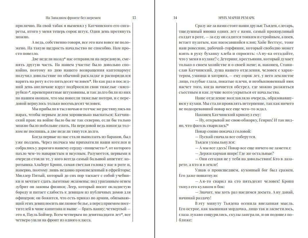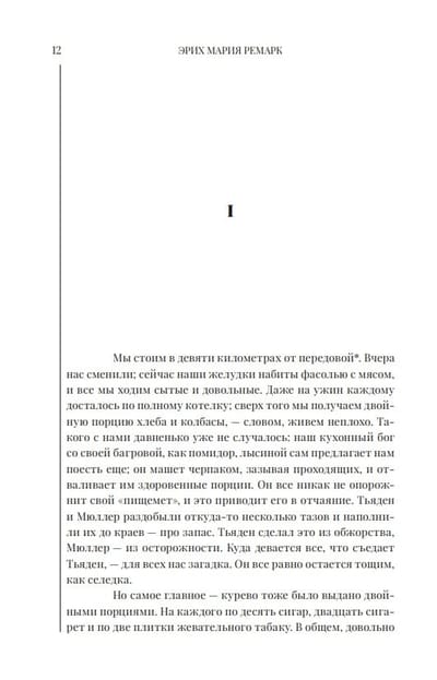 Мы предлагаем читающей публике новое издание романа «На Западном фронте без перемен», текст которого осмыслен с точки зрения дня сегодняшнего и снабжен комментариями. Люди, зачитывавшиеся романом в 1929 году, хорошо знали реалии мира, в котором живут, борются и погибают герои писателя. Сейчас эти подробности стушевались под напором картин более поздних войн, и в первую очередь Второй мировой. К тому же Ремарк и не собирался детально описывать нюансы военной жизни. Он ставил задачу нарисовать экспрессивную картину ада, мясорубки, которая перемолола целое поколение. Но современному читателю, на наш взгляд, необходимо знать сугубые частности фронтовой жизни и — основные перипетии Первой мировой войны. Той самой войны, которая, как полагают некоторые историки, начала разрушать европейскую цивилизацию, запустила процесс, уже, возможно, ставший необратимым.