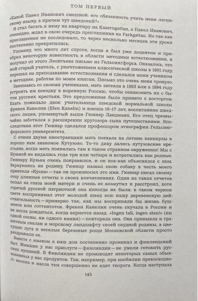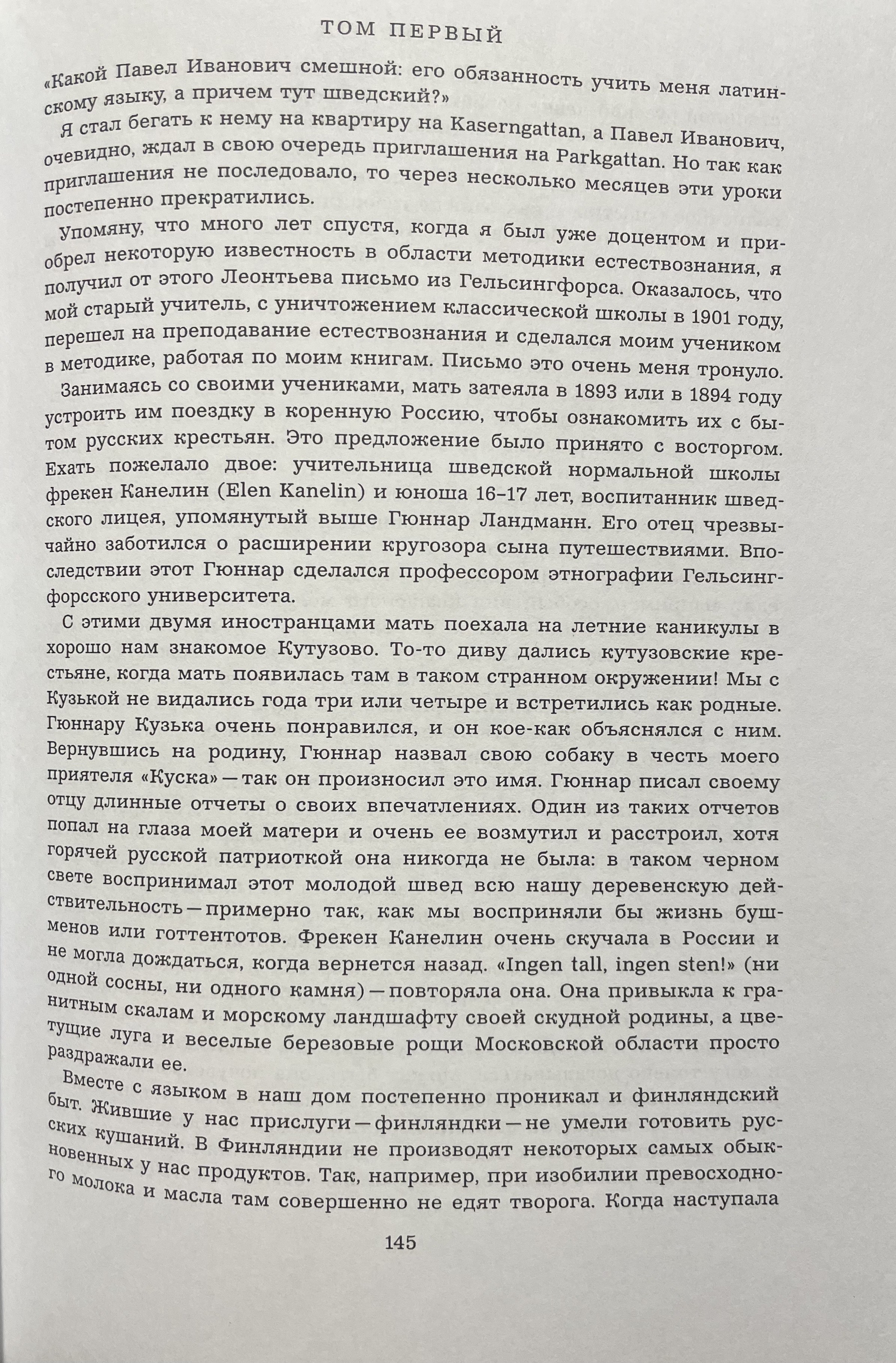 Первая из них охватывает период с 1870-х гг. до 1930 г. Это генеалогия семьи, две гимназии (в Гельсингфорсе и в Петербурге), университет, студенческое протестное движение, подпольная деятельность, заключение, ссылка, работа в средних и высших учебных заведениях, становление автора как ученого, его семейная жизнь, подробности жизни и работы во время революции и Гражданской войны, борьба, разгоревшаяся в 20-е гг. вокруг методов преподавания в советской школе.