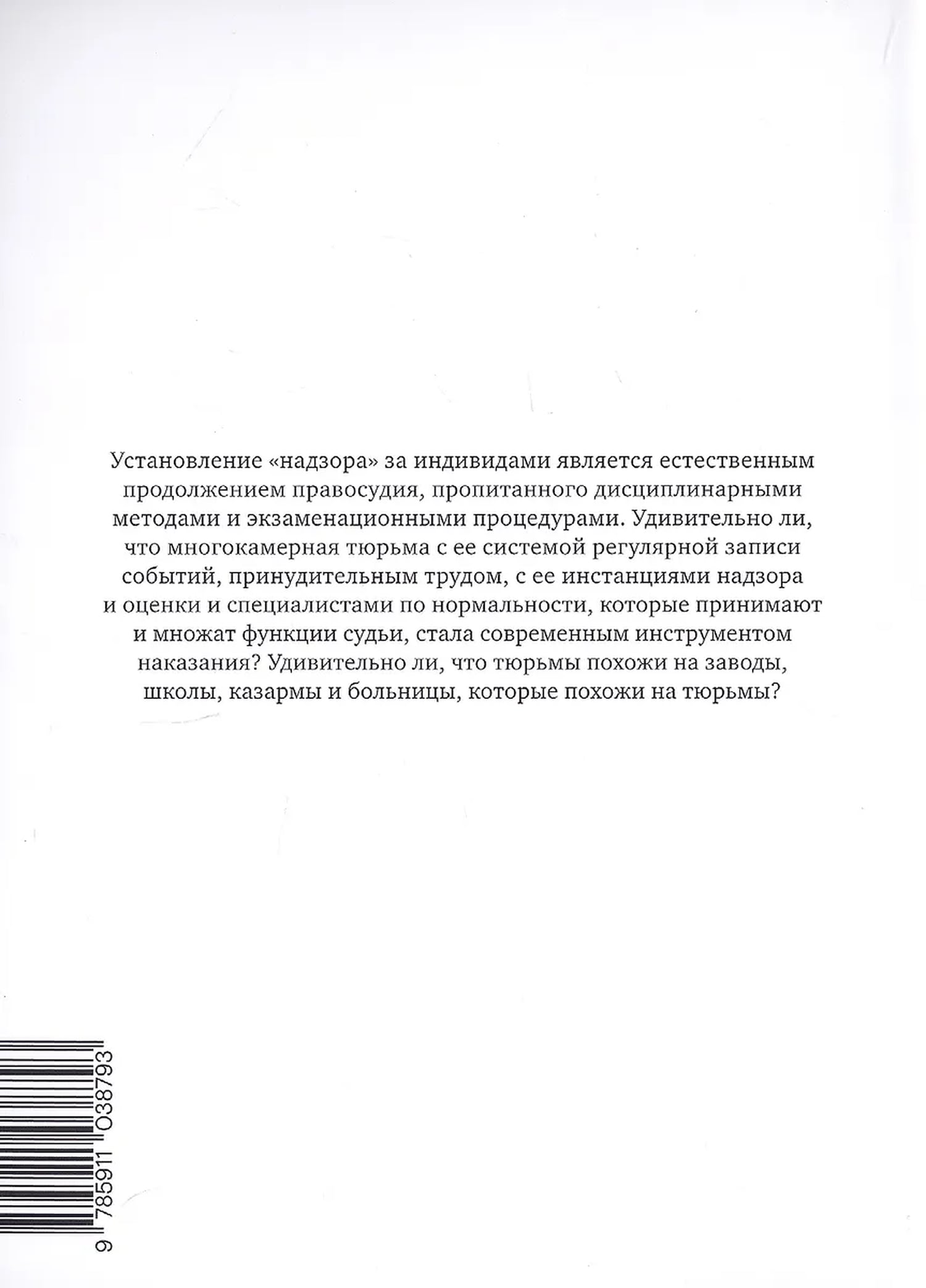 Более 250 лет назад на Гревской площади в Париже был четвертован Робер-Франсуа Дамьен, покушавшийся на жизнь короля Людовика XV. - описания его чудовищной казни начинается «Надзирать и наказывать» — одна из самых революционных книг по современной теории общества. Кровавый спектакль казни позволяет Фуко продемонстрировать различия между индивидуальным насилием и насилием государства и показать, как с течением времени главным объектом сударственного контроля становится не тело, а душа преступника. Эволюция способов надзора и наказания постепенно превращает грубое государственное насилие в сложнейший механизм тотальной биовласти, окутывающий современного человека в его повседневной жизни и формирующий общество тотального контроля.