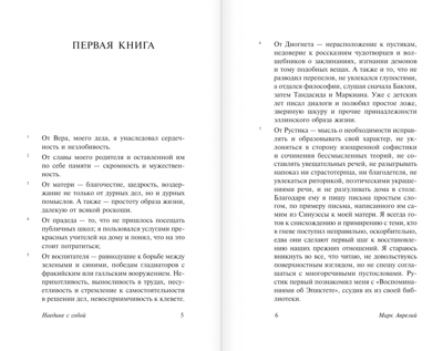 Эти личные записи отражают упорное стремление императора не только руководствоваться в своем мироощущении учением стоиков, но и развивать его дальше, назвав ведущим началом в человеке не душу, но разум, который нужно привести в согласие с природой целого, достигнув таким образом бесстрастия.