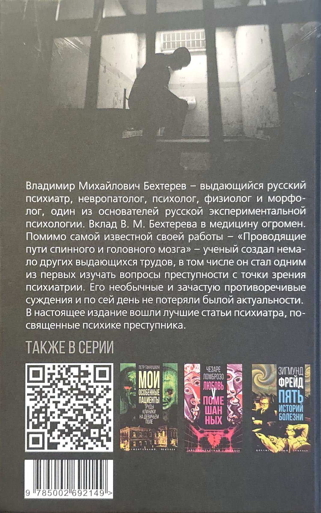 Владимир Михайлович Бехтерев – выдающийся русский психиатр, невропатолог, психолог, физиолог и морфолог, один из основателей русской экспериментальной психологии. Вклад В. М. Бехтерева в медицину огромен. Помимо самой известной своей работы – «Проводящие пути спинного и головного мозга» – ученый создал немало других выдающихся трудов, в том числе он стал одним из первых изучать вопросы преступности с точки зрения психиатрии. Его необычные и зачастую противоречивые суждения и по сей день не потеряли былой актуальности. В настоящее издание вошли лучшие статьи психиатра, посвященные психике преступника.