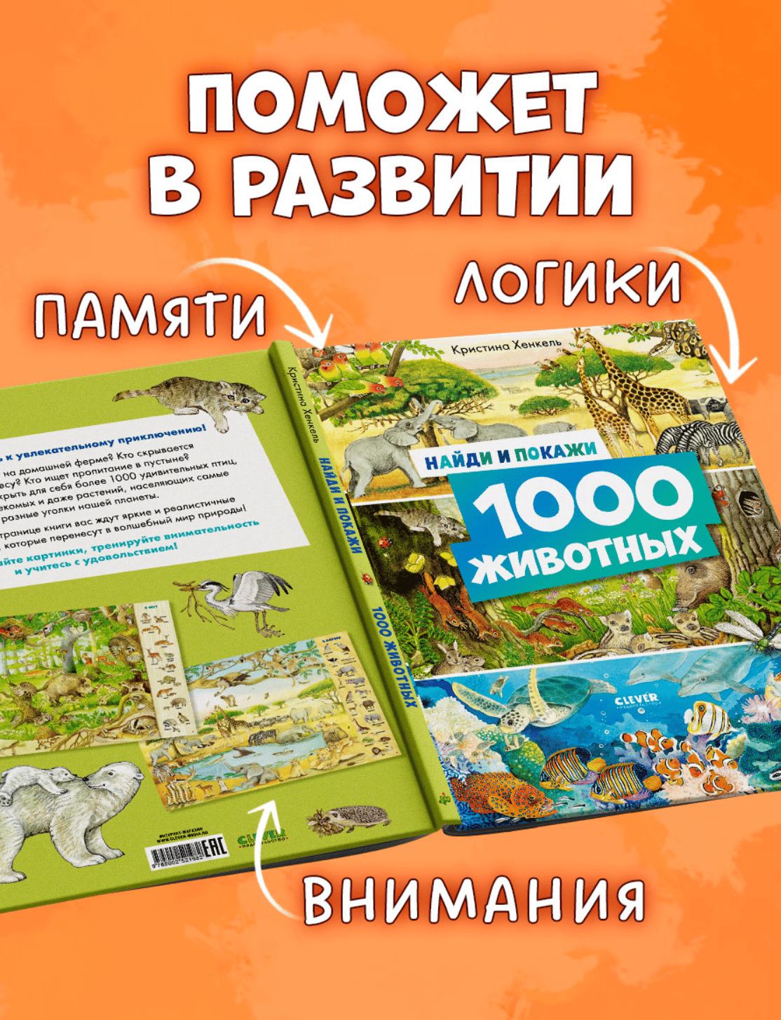 «Найди и покажи. 1000 животных» можно преподнести в подарок на любой праздник. Издание оценят и взрослые, которые выбирают интересные детские книжки, полезные книги для детей 3-4,-5-6 лет и развивашки 3-4,-5-6 года.