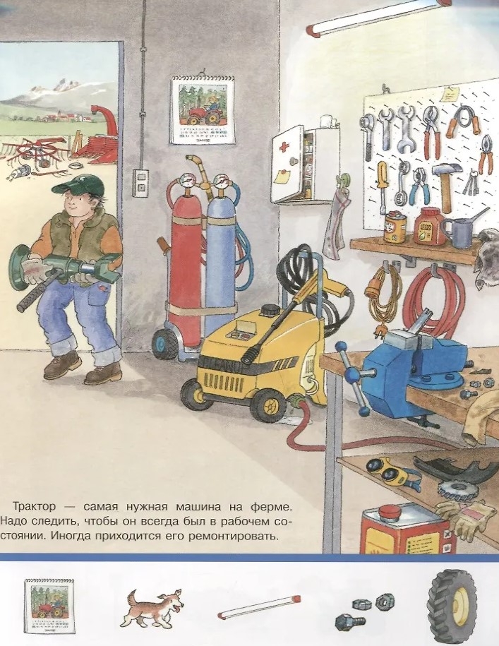Это и устройство самого фермерского хозяйства и различные животные, которые обитают в деревне рядом с человеком, описание основных сельскохозяйственных работ и многообразие видов техники, которая при этом используется, распорядок дня сельского жителя и перечень профессий, которыми надо овладеть, чтобы работать на ферме.