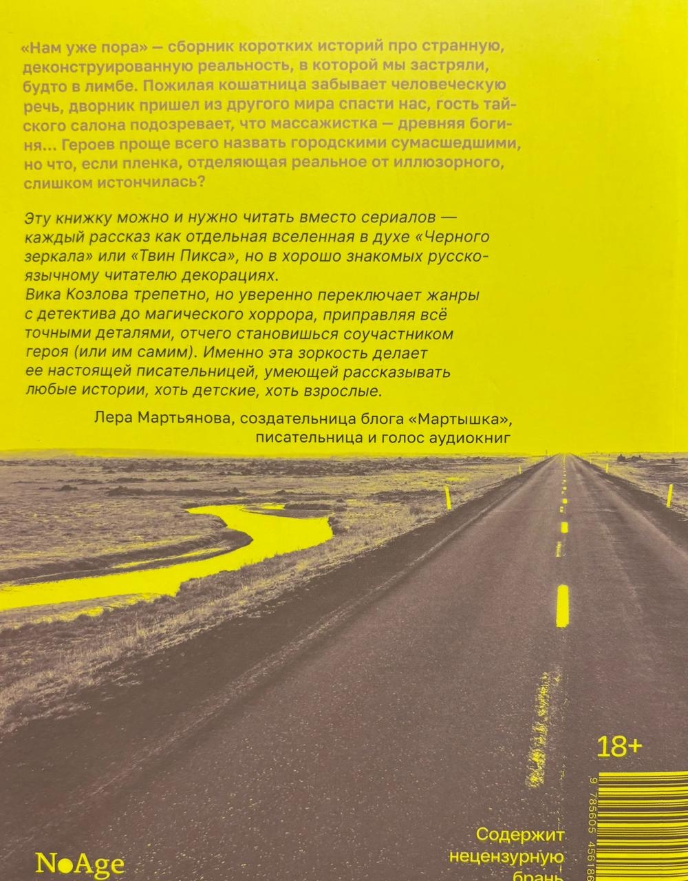 «Нам уже пора» — сборник коротких историй про странную, деконструированную реальность, в которой мы застряли, будто в лимбе. Пожилая кошатница забывает человеческую речь, дворник пришел из другого мира спасти нас, гость тайского салона подозревает, что массажистка — древняя богиня... Героев проще всего назвать городскими сумасшедшими, но что, если пленка, отделяющая реальное от иллюзорного, слишком истончилась?