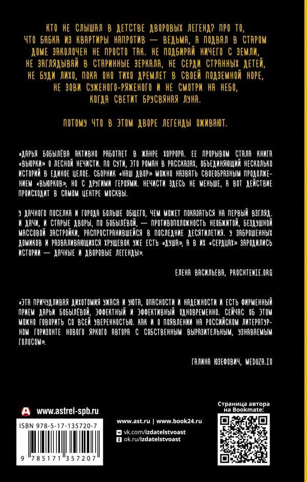 Кто не слышал в детстве дворовых легенд? Про то, что бабка из квартиры напротив - ведьма, а подвал в старом доме заколочен не просто так. Не подбирай ничего с земли, не заглядывай в старинные зеркала, не серди странных детей, не буди лихо, пока оно тихо дремлет в своей подземной норе, не зови суженого-ряженого и не смотри на небо, когда светит брусвяная луна. Потому что в этом дворе легенды оживают.