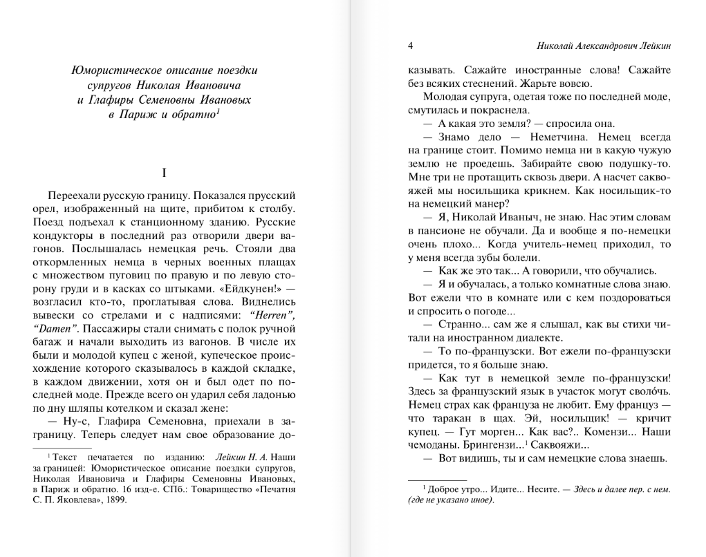 Впервые изданная в 1890 году, сатирическая повесть «Наши за границей» сразу завоевала заслуженную любовь современников и издается до сих пор.