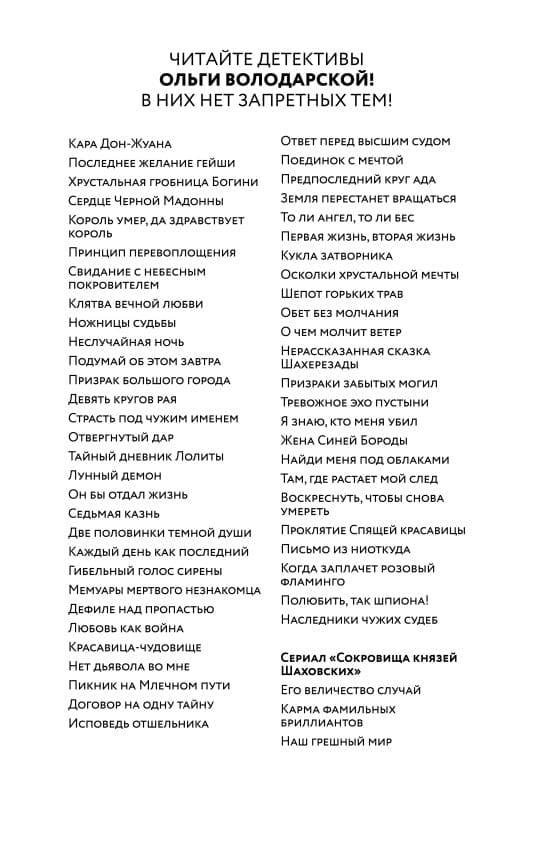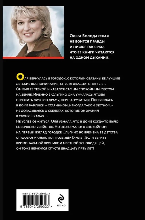 Не успев обжиться, Оля узнала, что в доме когда-то было совершено убийство. Но этого мало: в спокойном на первый взгляд городке Ольгино во времена ее детства орудовал маньяк по прозвищу Гамлет. Если верить криминальной хронике и местной ясновидящей, он тоже вернулся спустя двадцать пять лет!