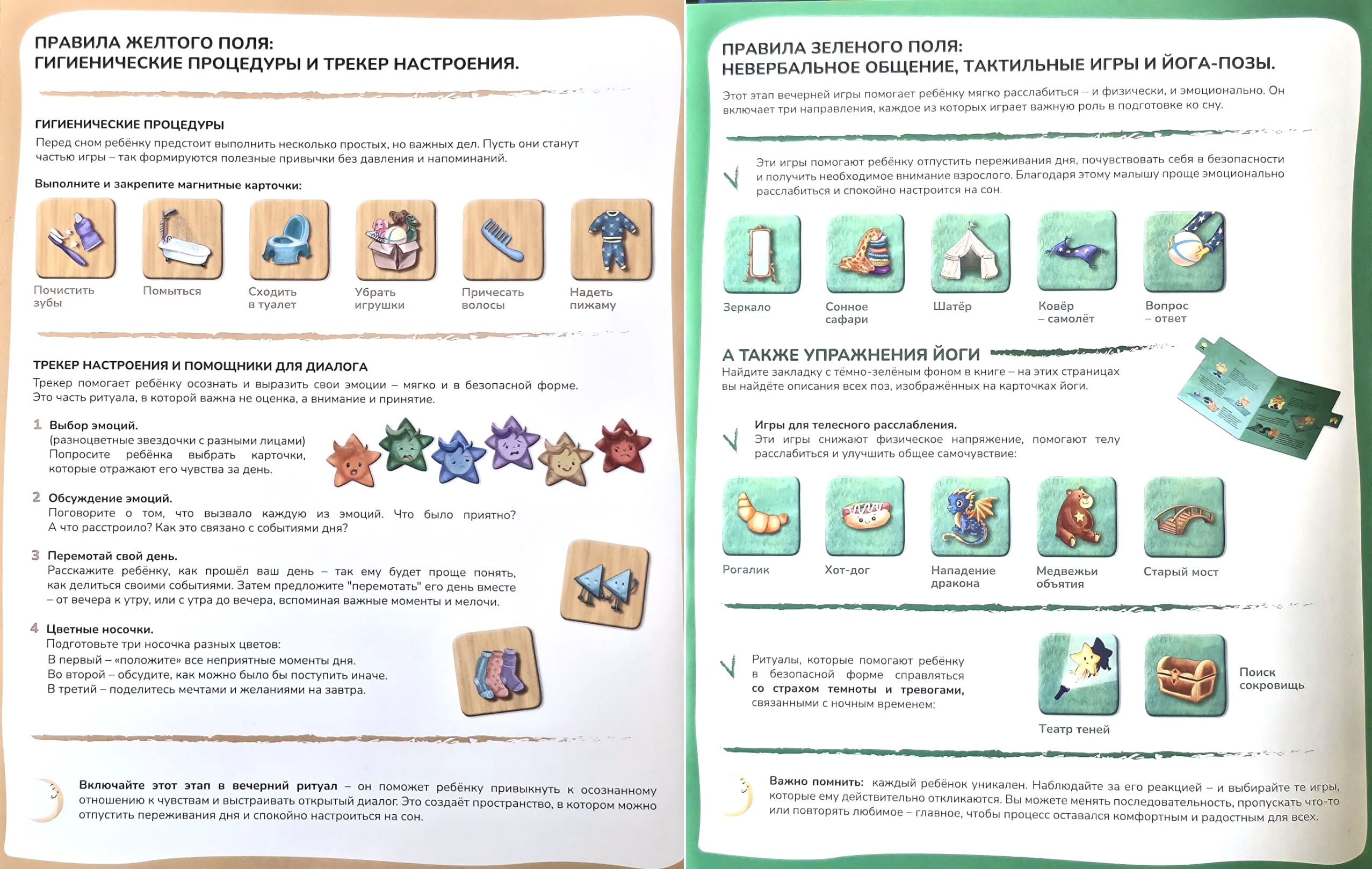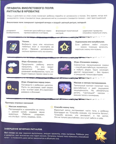 - Книга с закладками, в которой взрослый быстро и легко найдет описание вечерних ритуалов перед сном и разные полезные советы.