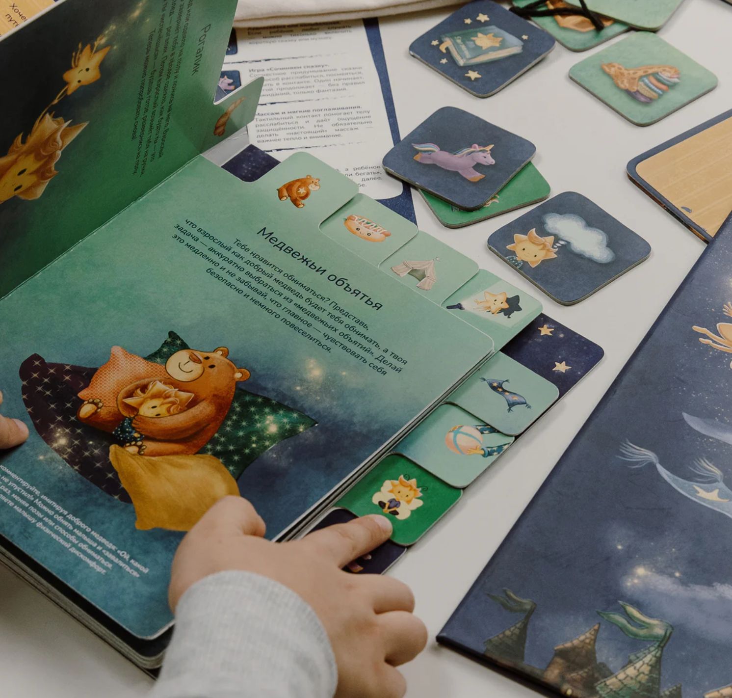 -⁠ Сонные приключения — магнитики с ритуалами, которые малыш или взрослый выберет и предложит на вечер в зависимости от настроения и отведенного на игру времени