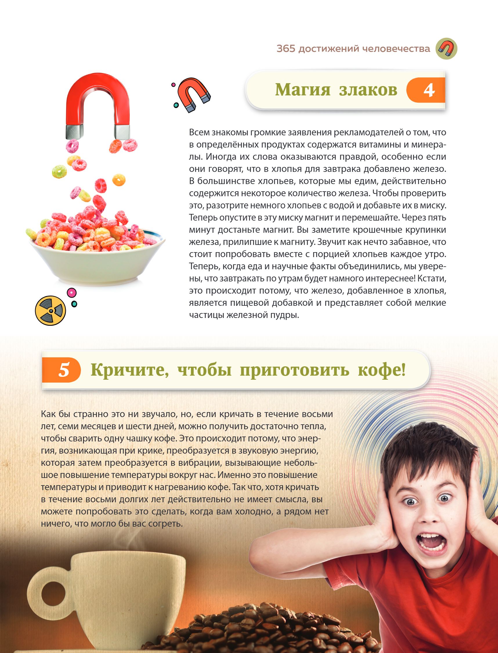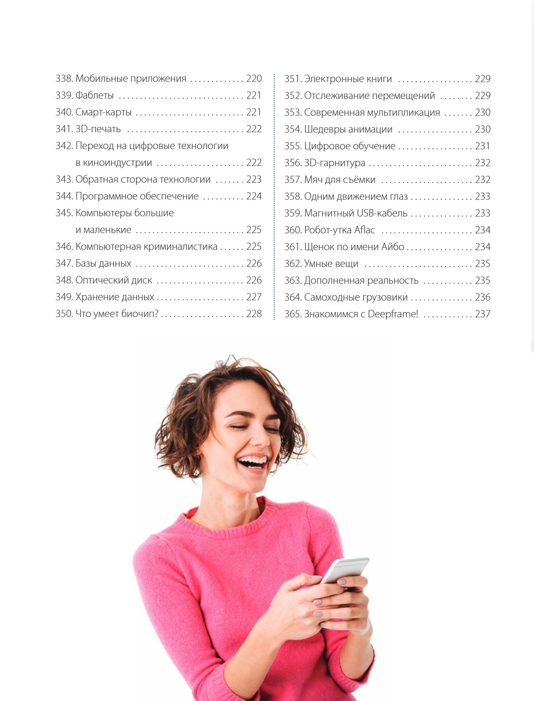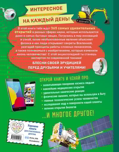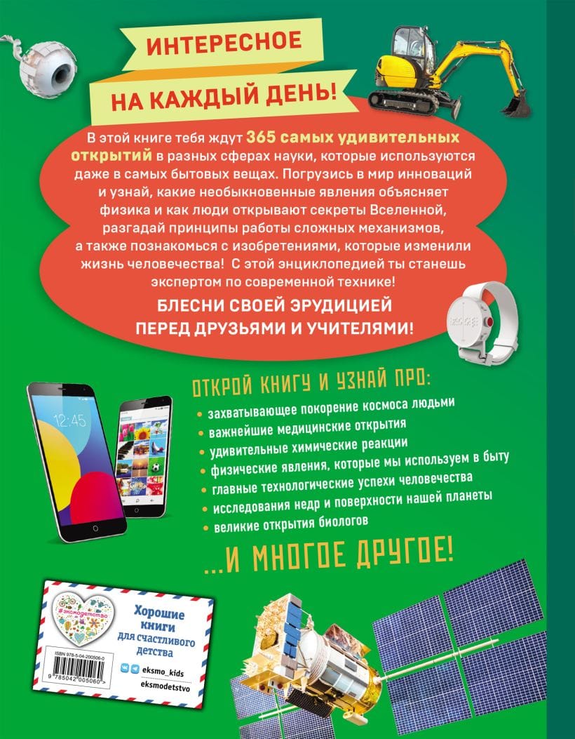 Энциклопедия на все 365 дней в году в самом популярном формате вопросов и ответов, разработанная специально для ребят 10—12 лет! В одной книге — целых 365 ответов на все вопросы школьника обо всём на свете: покорение космоса, медицинские исследования, удивительные химические открытия, физические явления, которые мы используем в быту, главные технологические успехи человечества и многое другое. Полезная информация изложена просто и доступно, поэтому чтение увлечёт ребёнка и легко наполнит новыми знаниями и интересом к изучению мира вокруг. А яркое оформление превратит эту энциклопедию в идеальную настольную книгу любознательного школьника.
