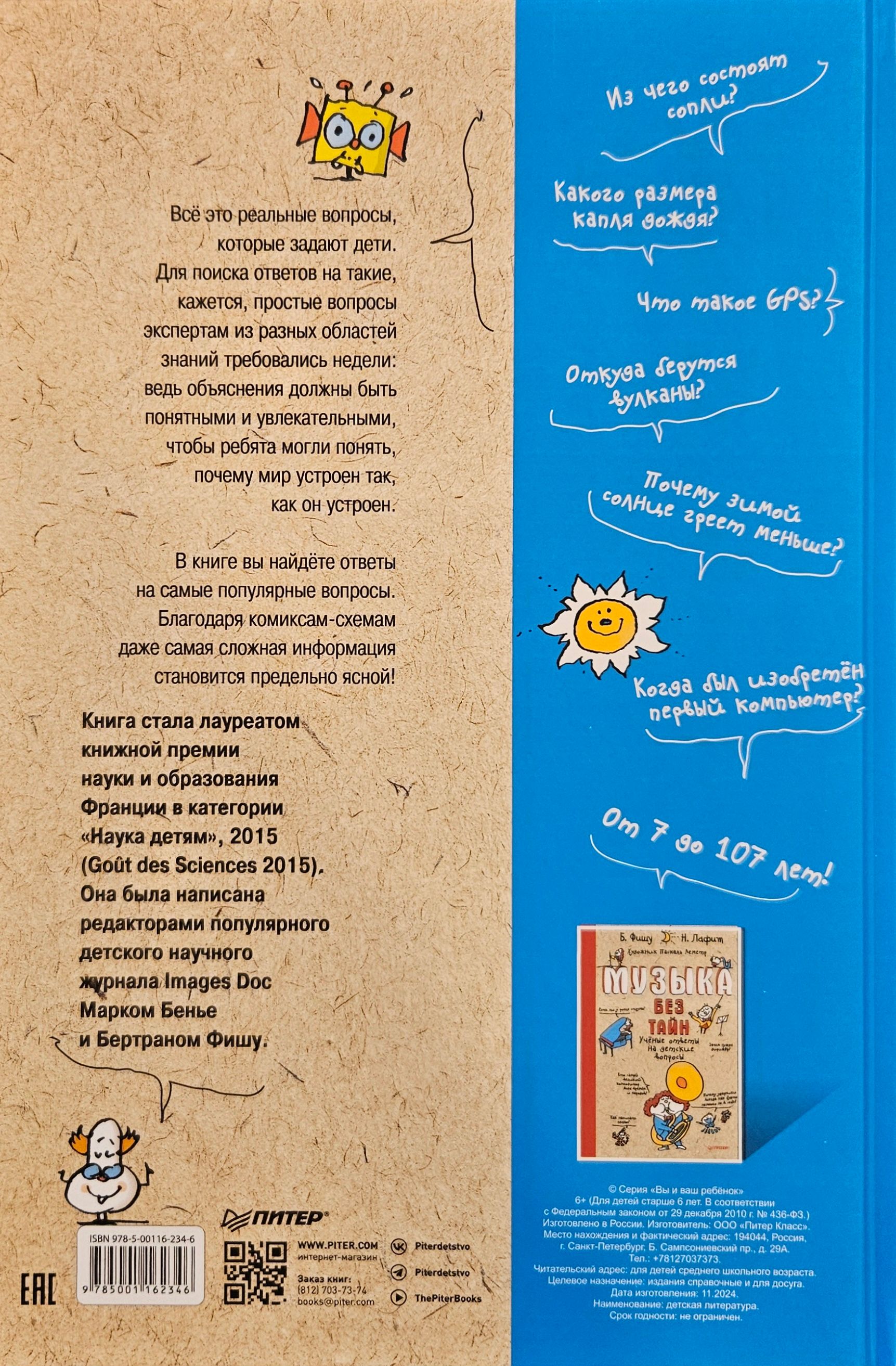 Какого размера капля дождя? Что такое GPS? Откуда берутся вулканы? Почему зимой солнце греет меньше? Когда был изобретен первый компьютер? Почему от прививок больно? Из чего состоят сопли?