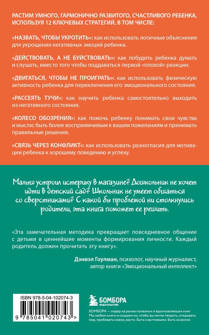 Малыш устроил истерику в магазине? Дошкольник не хочет идти в детский сад? Школьник не умеет общаться со сверстниками? С какой бы проблемой ни столкнулись родители, новаторская книга видного ученого, специалиста в области детской и возрастной психологии Дэниэля Дж. Сигела, написанная в соавторстве с экспертом по воспитанию Тиной Пэйн Брайсон, поможет ее решить.