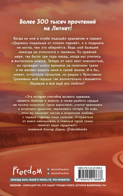 Когда ко мне в клубе подошёл красавчик и сказал: «Держись подальше от плохих парней», — я и подумать не могла, чем это обернётся. Ведь мой бывший никогда не относился к таковым. По крайней мере, так было три года назад, когда мы учились в выпускном классе. Теперь от него веет опасностью, он проводит много времени на гоночном треке и не желает видеть меня в своей жизни. И я бы, может, отпустила прошлое, но рядом с Ярославом Громовым моё сердце так волнительно сжимается. Неужели я всё ещё его люблю?