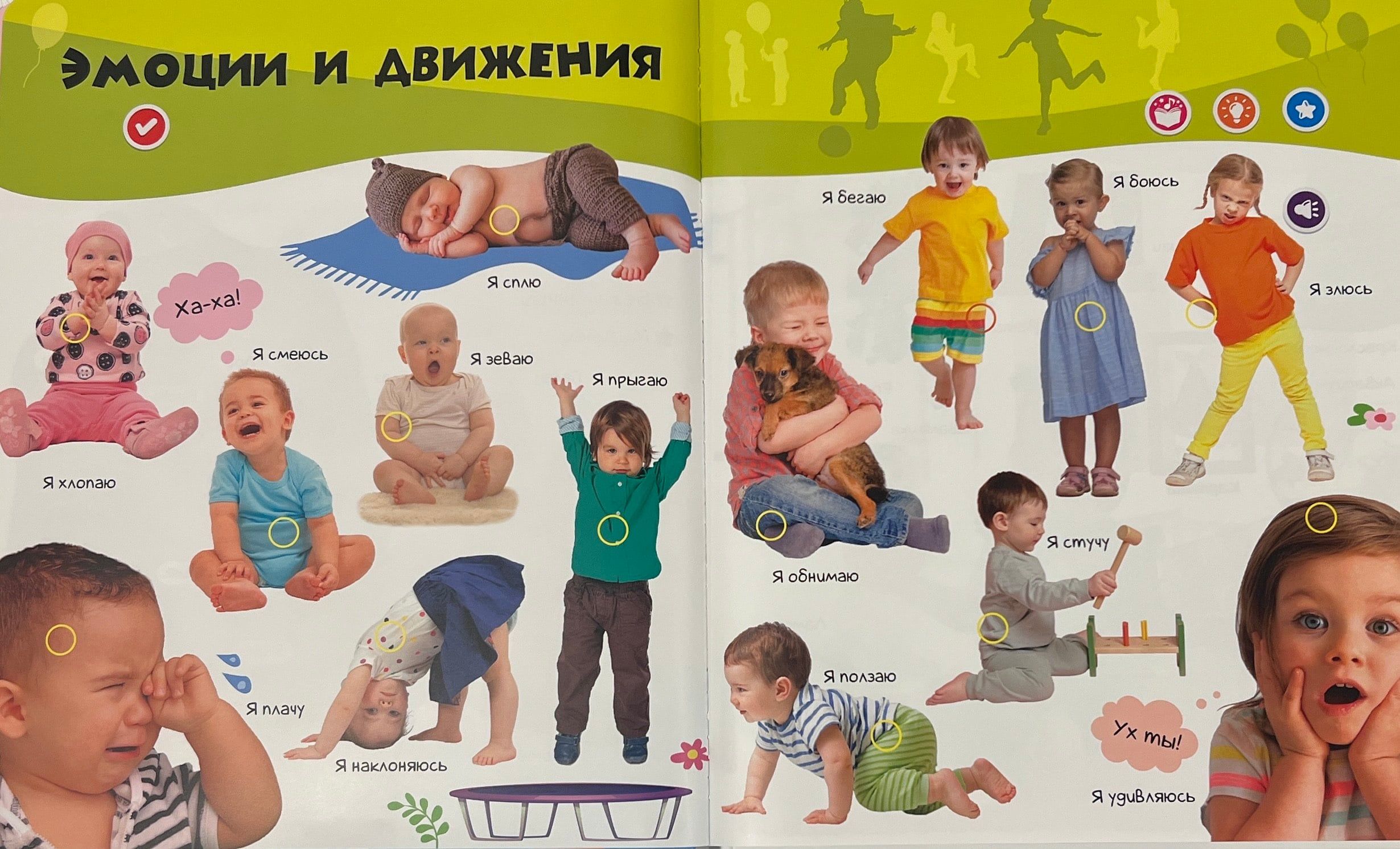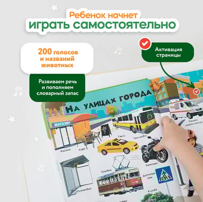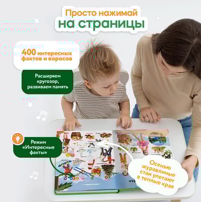 Говорящая интерактивная книга «Я и мир вокруг» — теперь в увеличенном формате! Нажимай пальчиком на страницы и картинки оживут! 28 страницы с реальными фотографиями. Более 800 фраз, заданий, вопросов. Четыре режима для игр и развития.