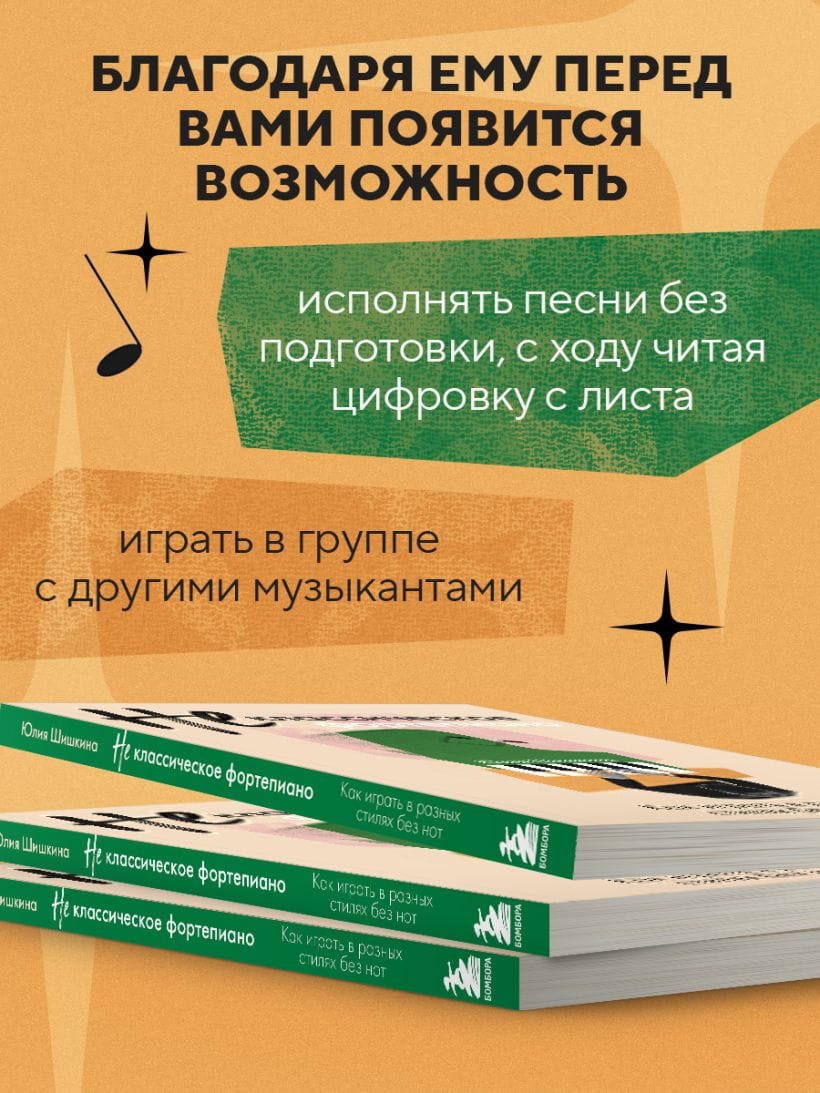 Благодаря книге Юлии Шишкиной вы познакомитесь с миром, параллельным привычной музыкальной реальности. В нем можно играть не только по нотам, но и по цифровкам (буквенному обозначению аккордов), с ходу создавать собственный аккомпанемент к любой песне, импровизировать и играть в разных стилях.
