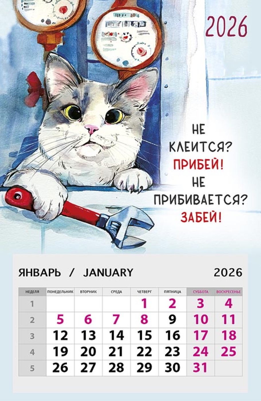 Не клеится? Прибей! Не прибивается? Забей! Календарь на магните отрывной на 2026 год
