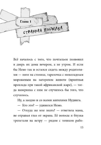 И угораздило же Немо родиться в Нудинге, самом скучном городке на свете! А ведь он всю жизнь мечтал о приключениях – но разве в таком болоте случится что-нибудь интересное?! Однако Немо и подумать не мог, какие головокружительные перемены его ждут… Всё началось с того, что к нему в руки попала странная посылка с надписью "Не открывать!" Конечно же, мальчик ни минуту не сомневался – эту коробку надо срочно открыть! И как же он удивился, когда обнаружил внутри плюшевого йети – живого и очень прожорливого! А тем временем на улице пошёл снег – прямо в середине лета!