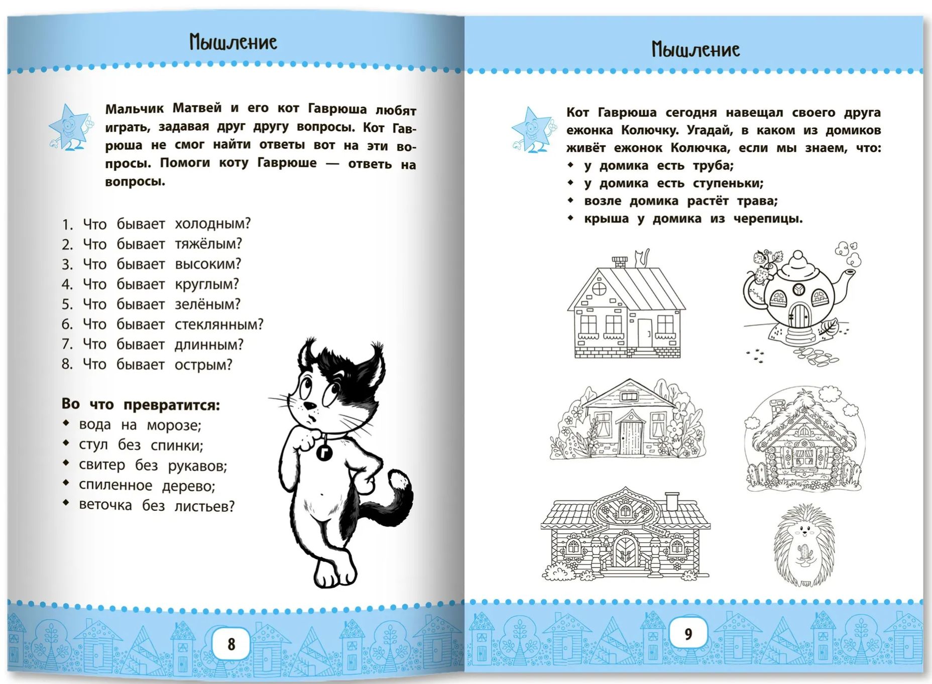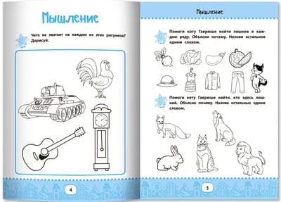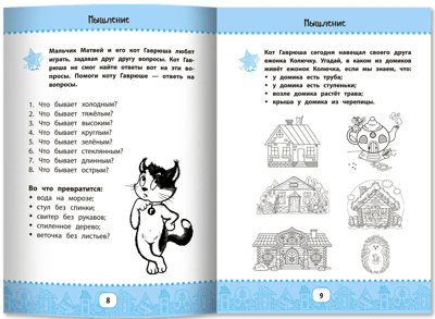 Курс развивающих занятий представляет собой комплекс специально разработанных заданий, направленных на активизацию умственных способностей: памяти, внимания и наблюдательности, процессов мышления и речи. Также упражнения способствуют развитию пространственного восприятия, зрительно-моторной координации и усидчивости, что особенно важно при подготовке ребёнка к школе и на начальных этапах обучения. Игровой формат заданий рассчитан на работу в паре «взрослый - ребёнок».