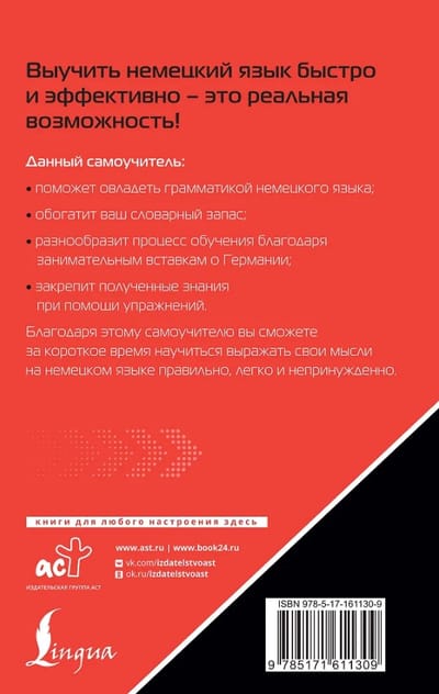 Самоучитель предназначен для широкого круга читателей, интересующихся изучением немецкого языка. Это издание идеально подходит для самостоятельного повторения материала и быстрого восстановления знаний.