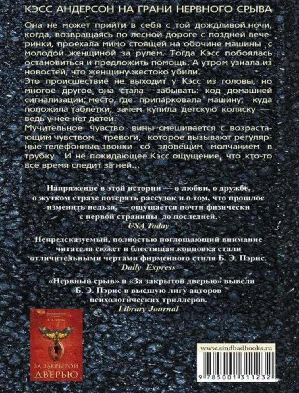 Кэсс побоялась остановиться и спросить, не нужна ли помощь. А через несколько дней узнала, что женщину убили. С тех пор Кэсс не может выбросить случившееся из головы, ее мучают угрызения совести. К ним добавляется тревога о собственном психическом здоровье - она забывает, приняла ли таблетки, не может вспомнить код домашней сигнализации, удивляется своим собственным покупкам. Неужели это проявления деменции, которой страдала ее рано ушедшая мать? Или дело в загадочных телефонных звонках, когда кто-то все время зловеще молчит в трубку? И в появившемся у Кэсс неотвязном ощущении, что за ней следят?..