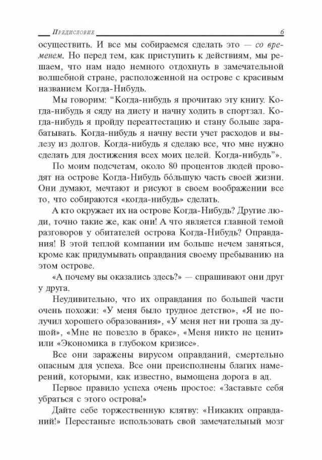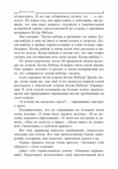 Каждая из 21 глав книги показывает, как повысить уровень дисциплинированности в каком-то одном аспекте жизни, а предлагаемые в конце главы практические упражнения помогут вам применить подход «отказа от оправданий» в вашей собственной жизни. Освоение навыков самодисциплины принесет вам громадную пользу… поэтому прекратите искать оправдания и прочтите эту книгу!