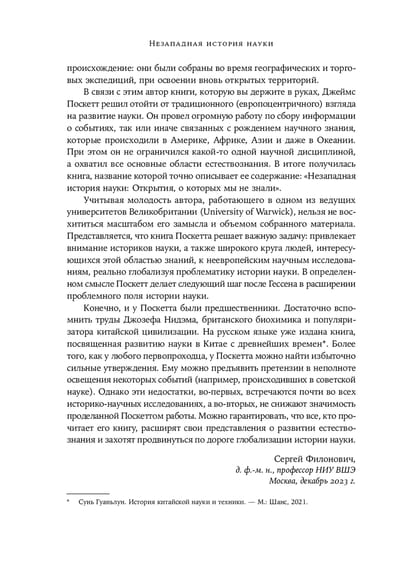 Джеймс Поскетт переосмысливает историю знания, опровергая идею о том, что современная наука — это исключительно западное изобретение. Он убедительно демонстрирует, как прогресс возникает в результате сотрудничества и обмена знаниями блестящих умов из разных стран мира. От важного вклада арабских ученых в европейскую науку до богатства древнекитайской медицины, ботаники и фармакологии, в книге раскрывается многообразие научных достижений за пределами привычных нам географических и культурных границ.