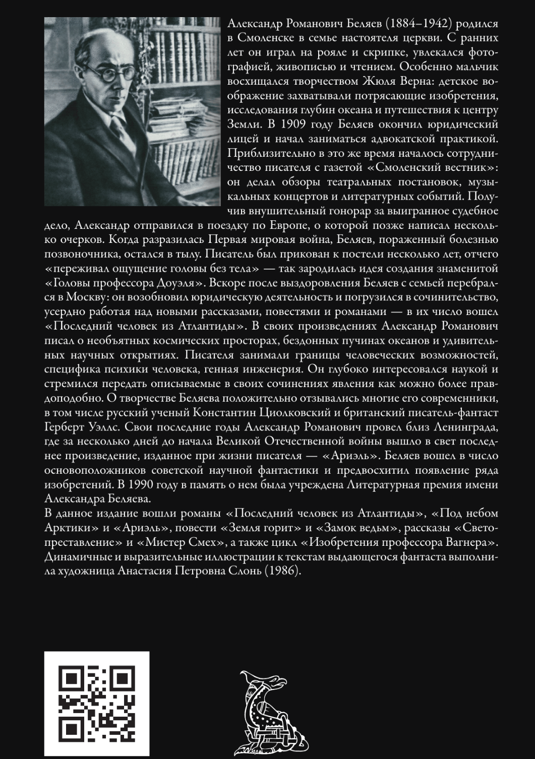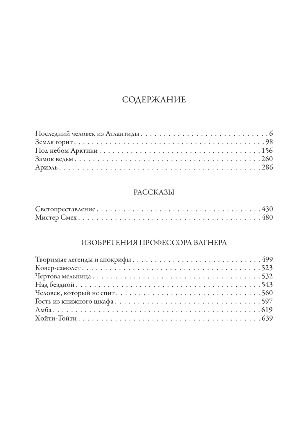 В данное издание вошли романы «Последний человек из Атлантиды», «Под небом Арктики» и «Ариэль», повести «Земля горит» и «Замок ведьм», рассказы «Светопреставление» и «Мистер Смех», а также цикл «Изобретения профессора Вагнера». Динамичные и выразительные иллюстрации к текстам выдающегося фантаста выполнила художница Анастасия Петровна Слонь (1986).