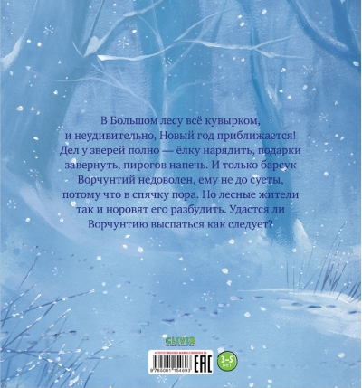 В Большом лесу всё кувырком, и неудивительно, Новый год приближается! Дел у зверей полно — ёлку нарядить, подарки завернуть, пирогов напечь. И только барсук Ворчунтий недоволен, ему не до суеты, потому что в спячку пора. Но лесные жители так и норовят его разбудить. Удастся ли Ворчунтию выспаться как следует?