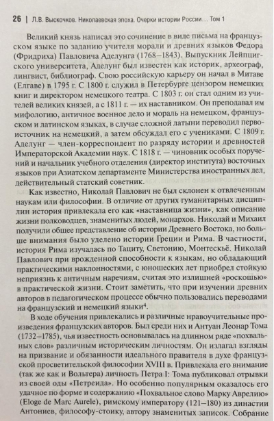 Многоплановый труд доктора исторических наук, профессора СПбГУ Л. В. Вы-скочкова, приуроченный к 200-летию восшествия на престол Николая I (1825-2025), посвящен царствованию одного из самых масштабных и неординарных правителей России. Личность императора Николая Павловича предстает перед читателями во всей ее противоречивой полноте. «Укротитель революций», «жандарм Европы», «Николай Палкин» - такими прозвищами пытались стигматизировать самодержца его недобро-желатели. Сам Николай I с гордостью называл себя государем-консерватором. Вопреки распространенному заблуждению, этот монарх отнюдь не являлся врагом всяческих перемен: он ясно видел коренные проблемы России и искал пути их решения.