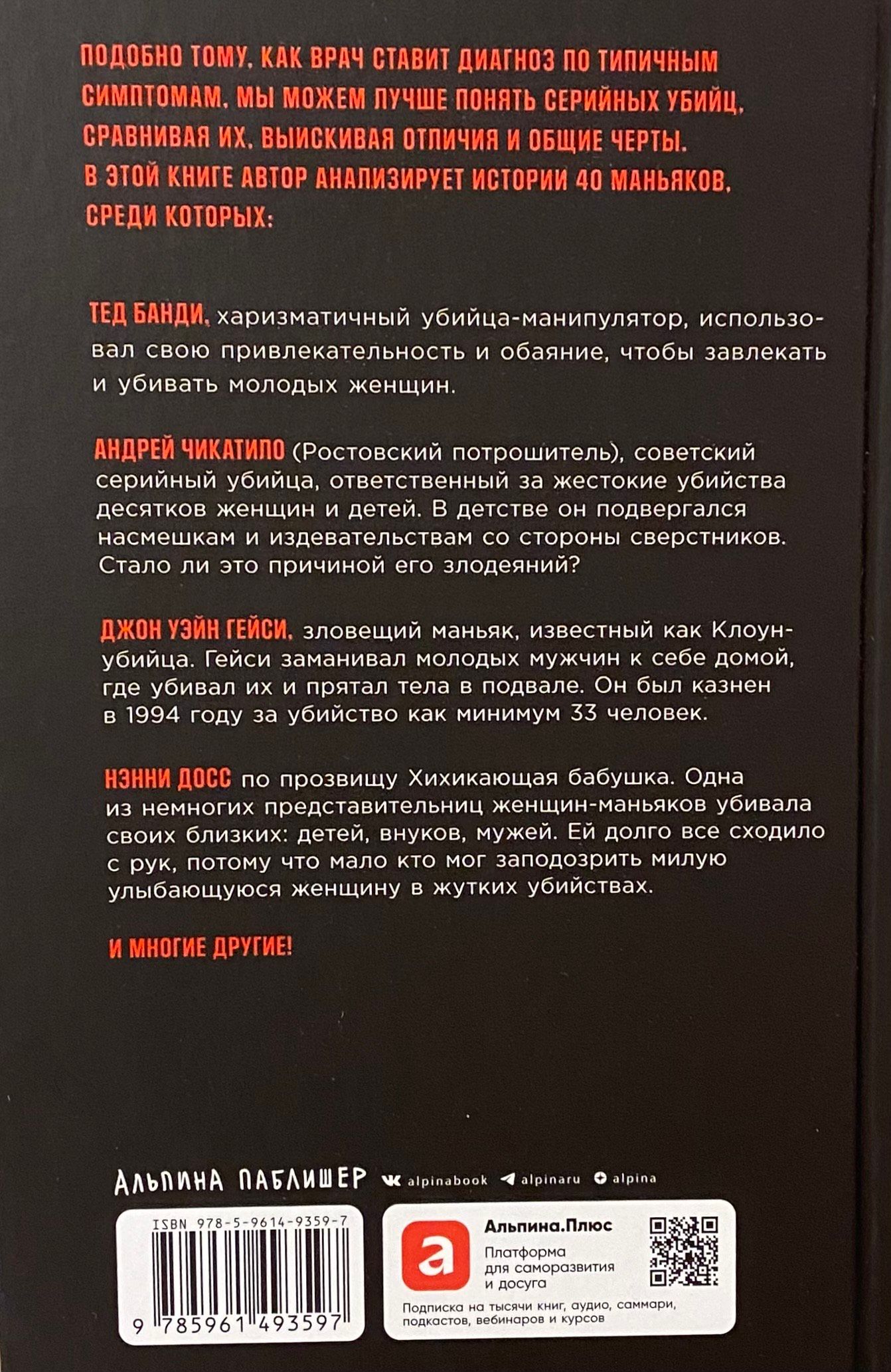 Ричард Эстеп исследует профили известных маньяков, чтобы изучить сходства и различия их мотивов, поведения и методов совершения преступлений. Его цель — понять глубинные механизмы человеческой психики и обстоятельства, которые формируют будущего серийного убийцу. Истории Джека-потрошителя, Джеффри Дамера, Клоуна-убийцы Джона Уэйна Гейси, Андрея Чикатило и других печально известных личностей подчеркивают универсальность факторов, способствующих формированию убийцы: врожденная склонность к жестокости, пережитые травмы, социальная изоляция и ненависть к себе и окружающим.