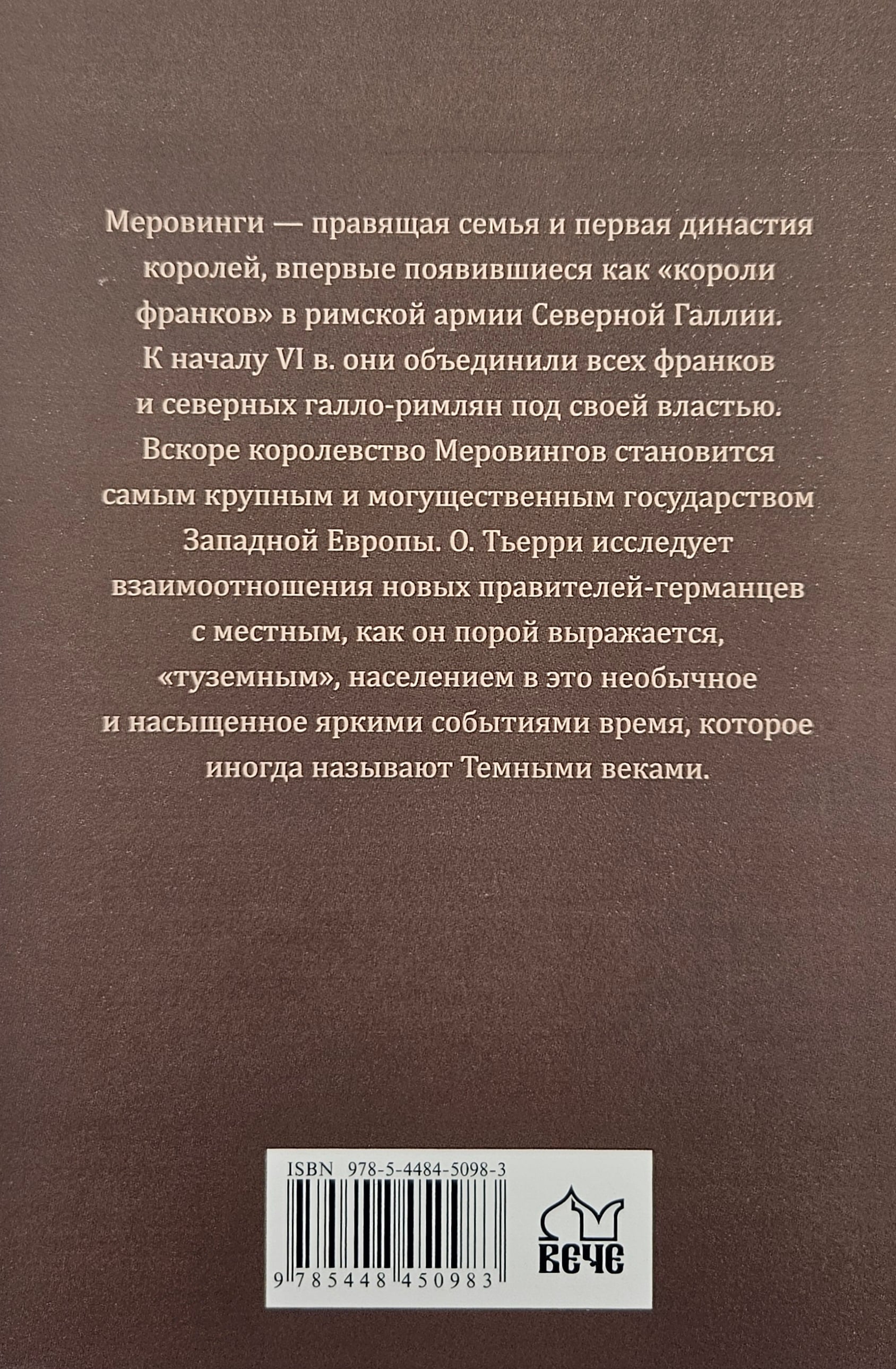 О. Тьерри исследует взаимоотношения новых правителей-германцев с местным, как он порой выражается, «туземным», населением в это необычное и насыщенное яркими событиями время, которое иногда называют Темными веками.