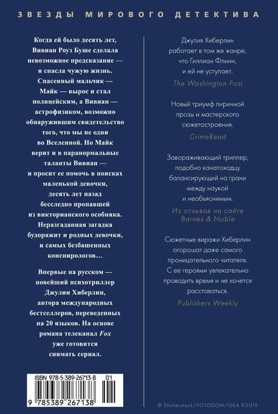 Когда ей было десять лет, Вивиан Роуз Буше сделала невозможное предсказание — и спасла чужую жизнь. Спасенный мальчик — Майк — вырос и стал полицейским, а Вивиан — астрофизиком, возможно обнаружившим свидетельство того, что мы не одни во Вселенной. Но Майк верит и в паранормальные таланты Вивиан — и просит ее помочь в поисках маленькой девочки, десять лет назад бесследно пропавшей из викторианского особняка. Неразгаданная загадка будоражит и родных девочки, и самых безбашенных конспирологов…