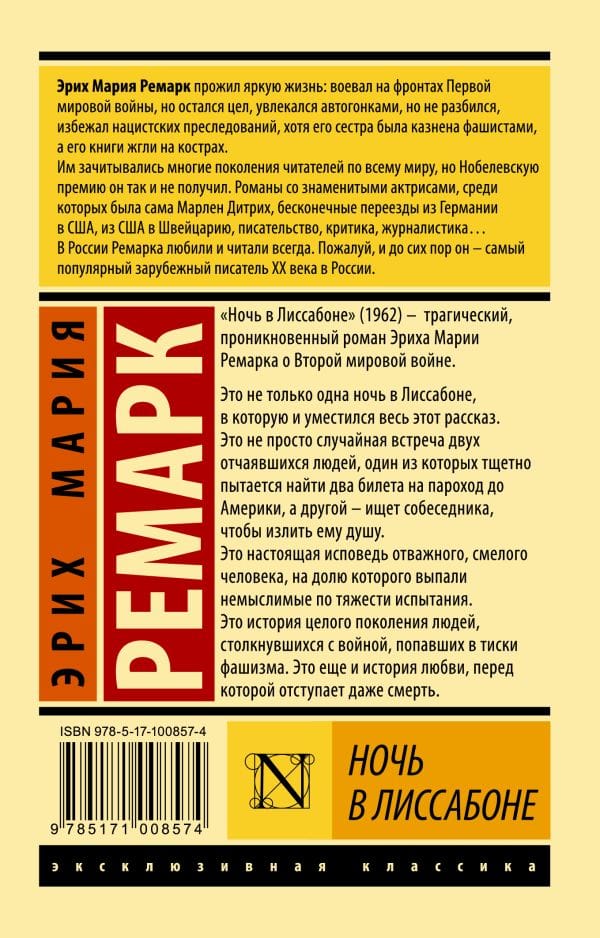 "Ночь в Лиссабоне" (1962) — трагический, проникновенный роман Эриха Марии Ремарка о Второй мировой войне.