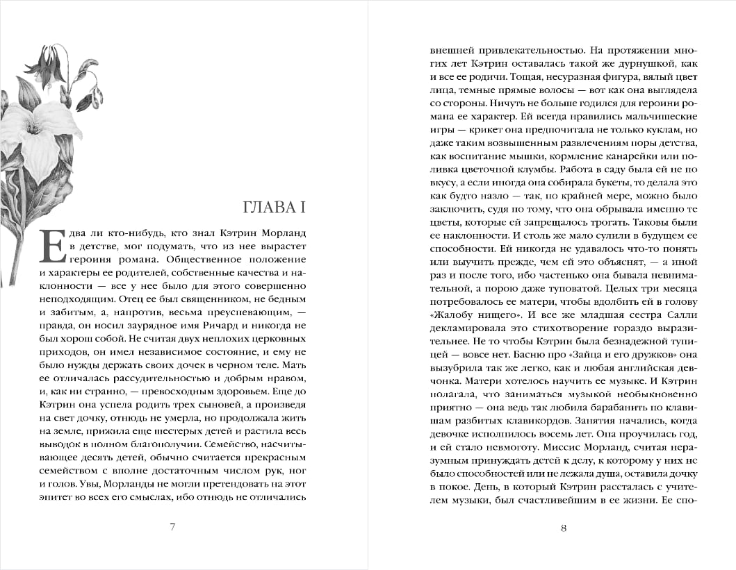 «Нортенгерское аббатство» — самая озорная книга Джейн Остен, изящная ирония над канонами любовного романа. Родители Кэтрин не слишком богаты, но отнюдь не бедны. Она не слишком красива, но и не дурна собой. Кэтрин наивна, но лишь из-за недостатка жизненного опыта. Она обожает готические романы, и вся ее жизнь, как ей кажется, полна мрачных тайн и загадок. И только благодаря любви героиня обретает новый взгляд на реальность, ей открываются неведомые прежде стороны жизни. Джейн Остен (1775—1817) — английская писательница, провозвестница реализма и основоположница «семейного романа». Ее книги покоряют безыскусной искренностью, простотой сюжета, глубиной психологического портрета героев и ироничным «английским» юмором. Во всех колледжах и университетах Великобритании ее романы обязательны для изучения. Остен родилась в семье священника, где бытовали совсем не чопорные нравы. Не получив почти никакого формального образования, много читала и уже в четырнадцать лет начала писать. При жизни ее книги публиковались анонимно, от лица некой «Леди». Помимо многочисленных экранизаций романов, и о жизни писательницы было снято несколько художественных фильмов.