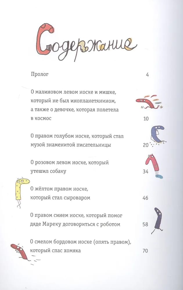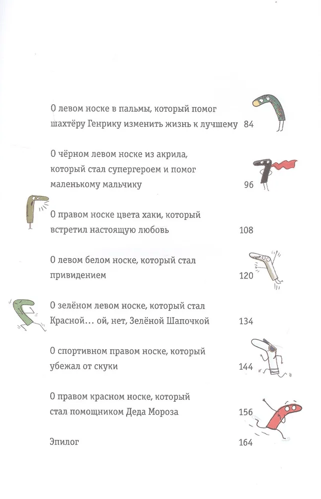 Вы уже знаете, куда исчезают носки? Да-да, они удирают в дырку под стиральной машиной и попадают в тот самый волшебный коридор. Здесь вы найдёте ещё тринадцать историй о непоседливых носках, которые не готовы всю жизнь просидеть в корзине с грязным бельём. Герои книги пускаются навстречу приключениям и берут судьбу в свои руки (или всё же ноги?). Благодаря смелости и настойчивости носки изменяют не только свою жизнь, но и мир вокруг, помогают другим стать счастливыми. А это именно то, к чему стоит стремиться каждому, неважно, человек ты или носок.