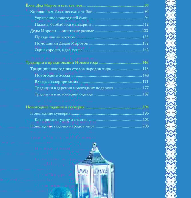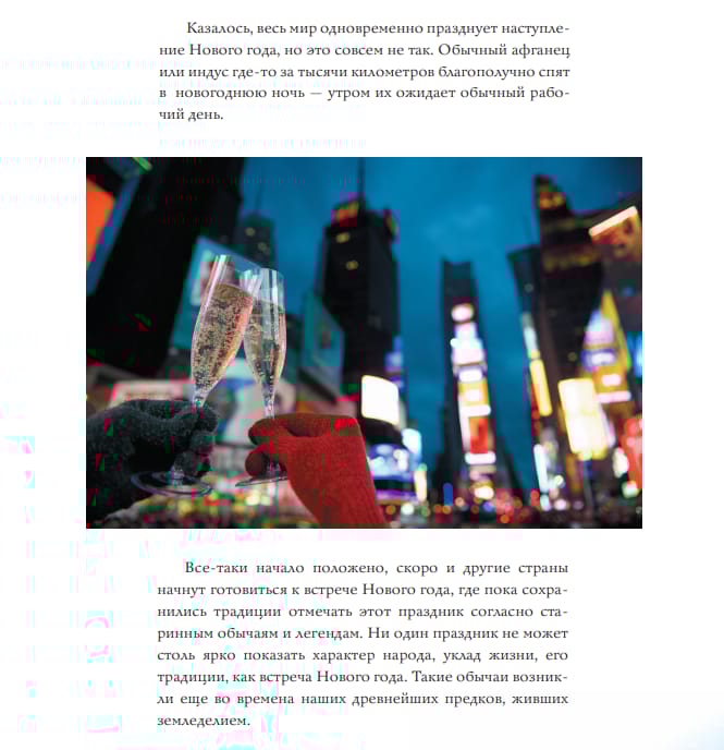 В этом подарочном издании содержится увлекательная информация о праздновании Нового года в разных странах. Традиции, амулеты, праздничная атрибутика и новогодний стол — это и многое другое вы найдете на страницах этой яркой книги.