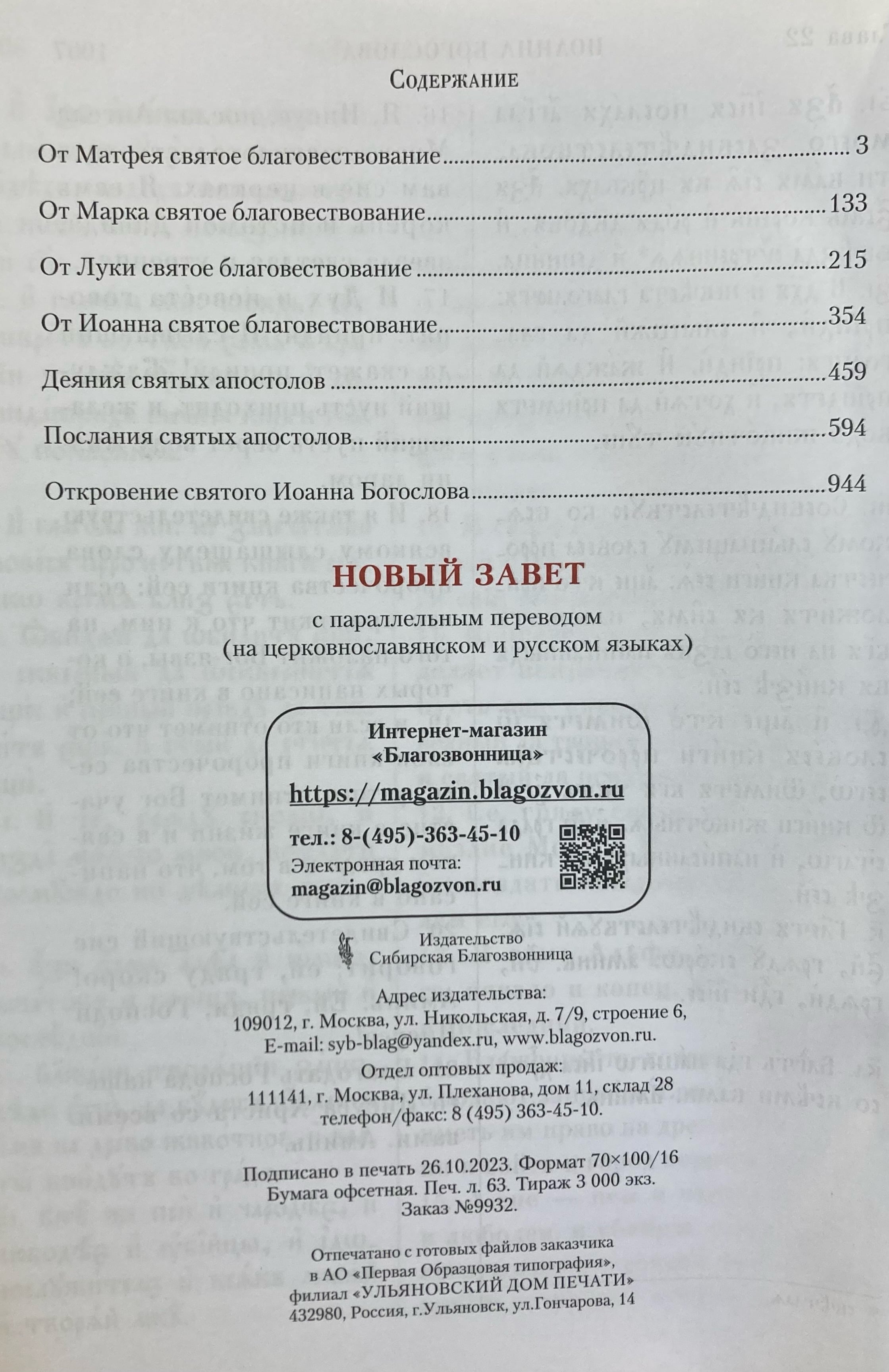 Славянский текст книги печатается с издания 1900 г. Санкт-Петербург. Синодальная типография.